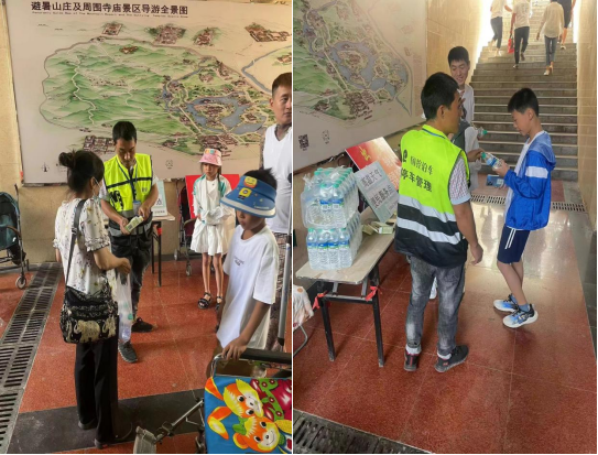 近日,受暖性高压脊影响,我市迎来持续数天的高温天气,相关部门相继发布了高温橙色、红色预警。市国动办、市云博-云博(中国)在避暑山庄门前地下人防停车场设置了“高温天气便民服务点”,为外地游客和本市市民免费发放矿泉水和藿香正气水,为出游的游客和市民提供饮水和预防中暑药物,受到了广大群众的一致好评。